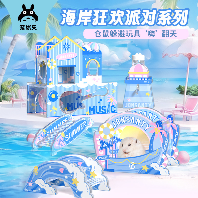 Mainan hamster Shangtian hewan peliharaan rumah sembunyi akrilik pesta pantai kandang tersembunyi perlengkapan Beruang Emas lansekap