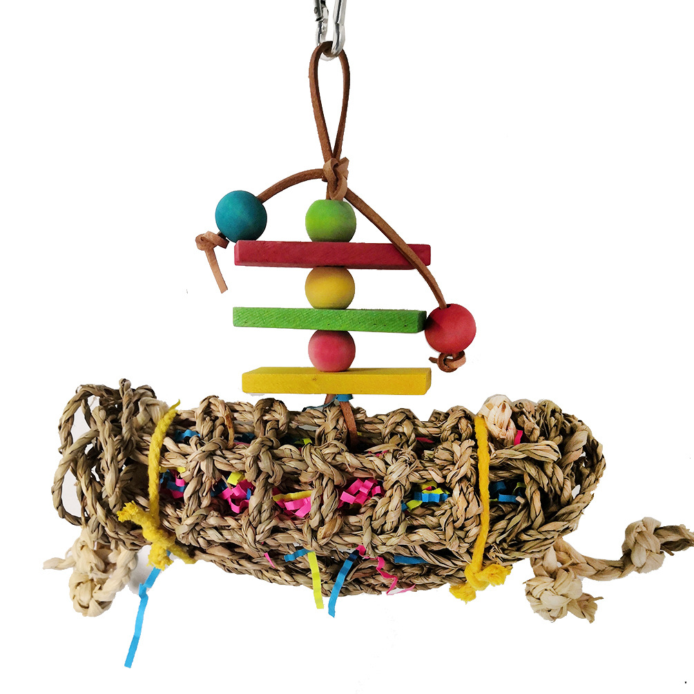 Persediaan burung beo mainan burung anyaman jerami kertas sutra tas nibbling blok bangunan molar menghilangkan persediaan kaku tali kulit sapi tali blok bangunan tali