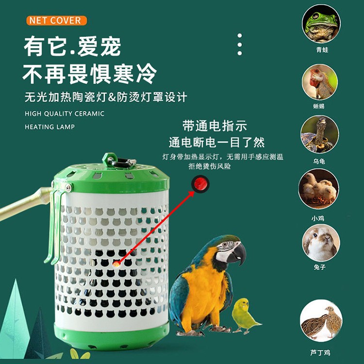 Tas burung beo peliharaan, lampu pemanas keramik lampu termal anti gigitan, lampu termal crawler jaring panas