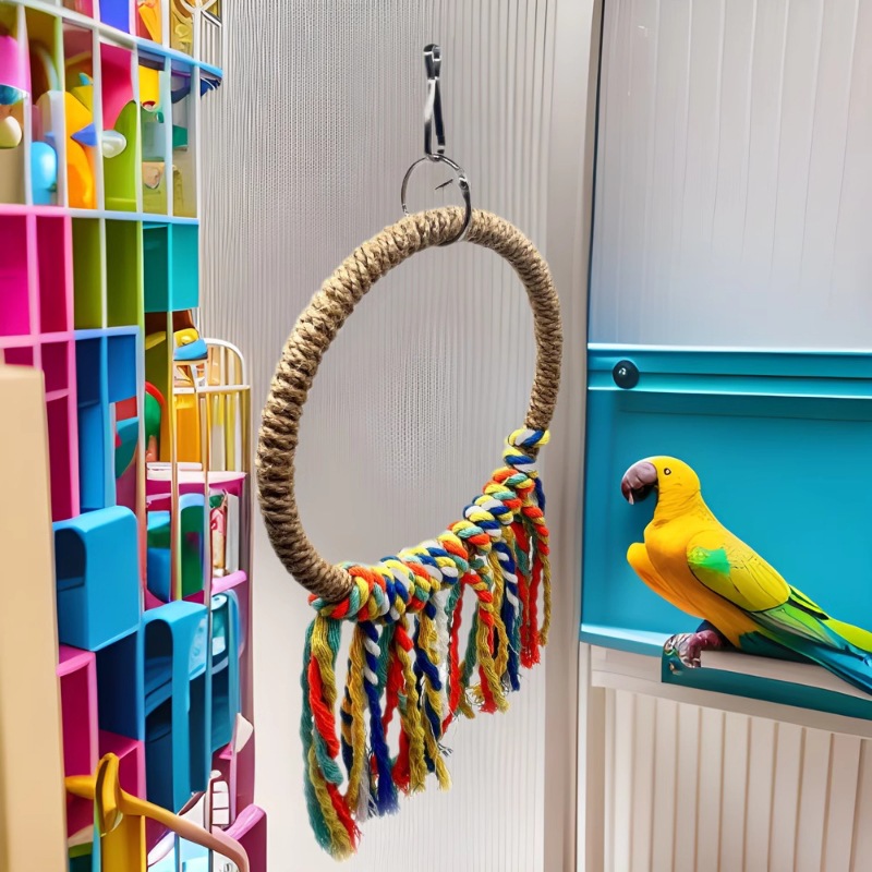 Mainan Burung Beo Cincin Gantung Sisal Ayunan Kreatif