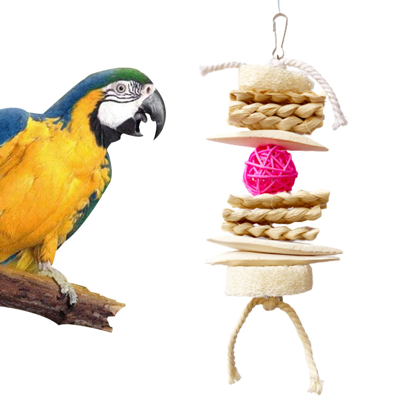 Persediaan gigitan mainan burung bayan Xuanfeng peoni kulit harimau molar mainan kecil cakar Gerinda Aksesori sangkar burung bola kayu lada