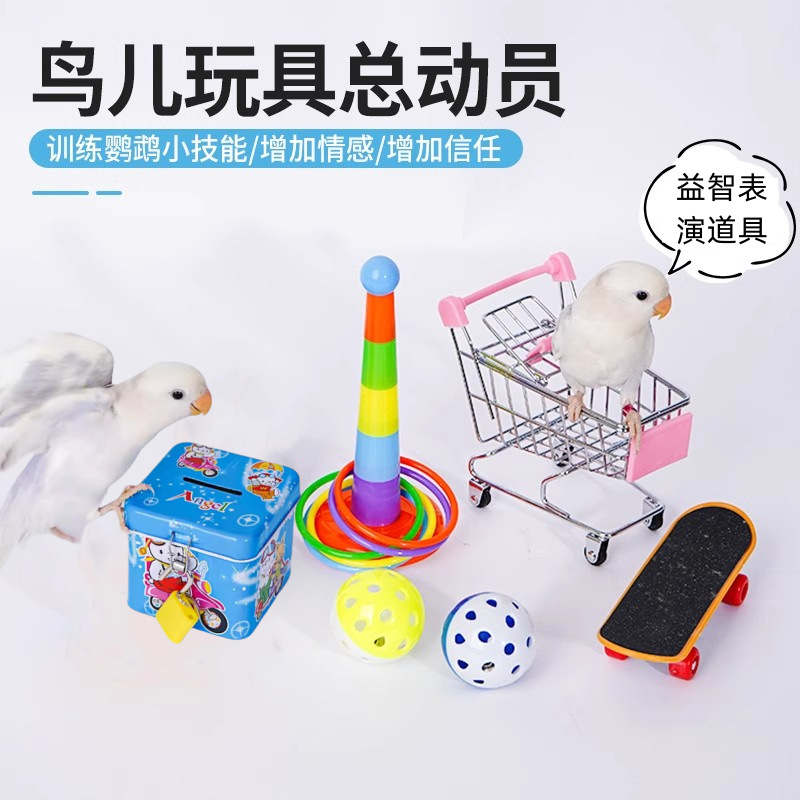 Produk kombinasi mainan burung bayan baru Alat interaktif latihan gigit bola kereta dorong skateboard ferrule