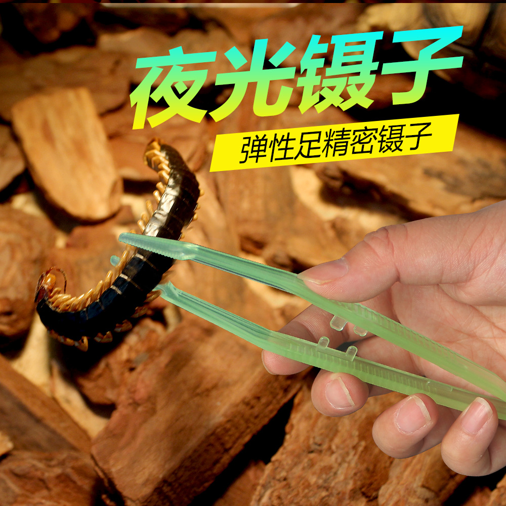 Anak-anak pinset bercahaya 18cm alat makan lurus hewan peliharaan reptil tanduk kadal katak laba-laba