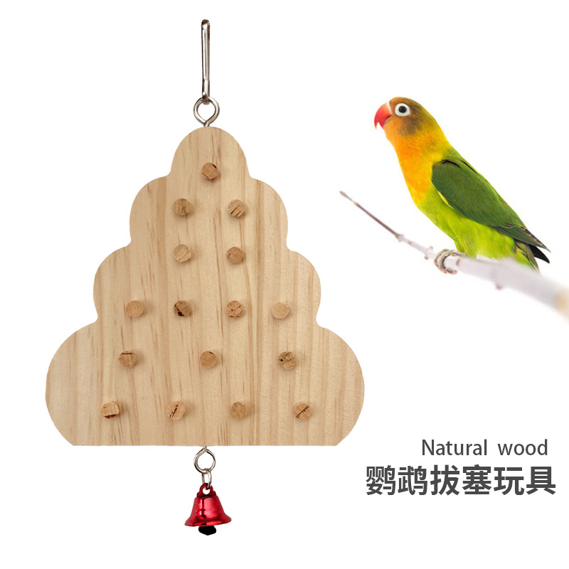 Mainan burung beo lintas batas mainan burung kayu peony Xuanfeng burung berdiri menggigit papan kayu steker tarik menghilangkan persediaan burung bayan kaku