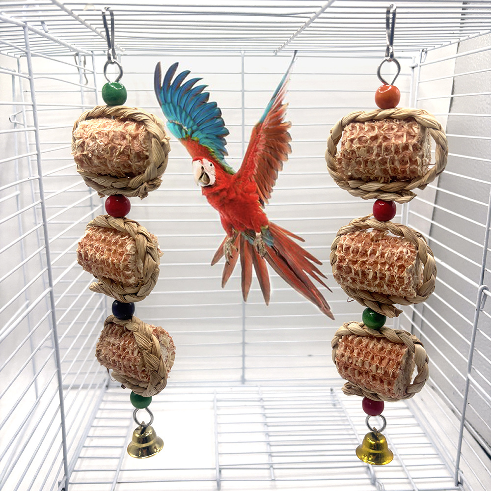 Mainan burung kulit jagung hewan peliharaan mainan burung beo menggigit mainan batang jagung jerami