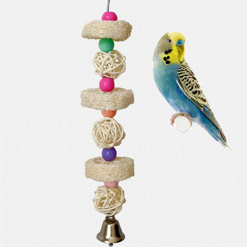 Hewan peliharaan burung mainan kunyah burung bayan nada dering ayunan gantung kandang mainan burung beo peliharaan persediaan burung peliharaan