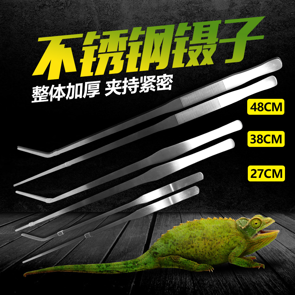 Power penjepit baja tahan karat 27cm alat makan melengkung perayap hewan peliharaan kadal kura-kura laba-laba
