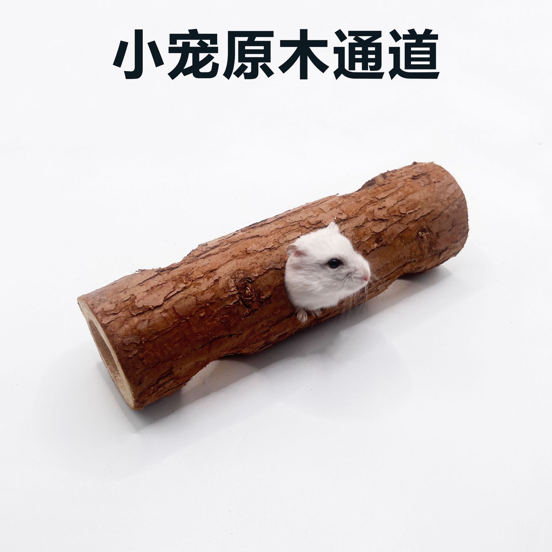 Mainan hewan peliharaan kecil mainan hamster kayu padat saluran pohon tabung pohon lubang keluar terowongan Beruang Emas burung latihan pelarian mainan