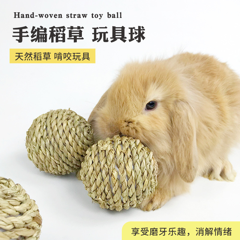 Mainan bola rumput air rajutan tangan kelinci hewan peliharaan bola rumput molar mainan kaku pereda Tikus belanda babi Totoro gigitan bola jerami