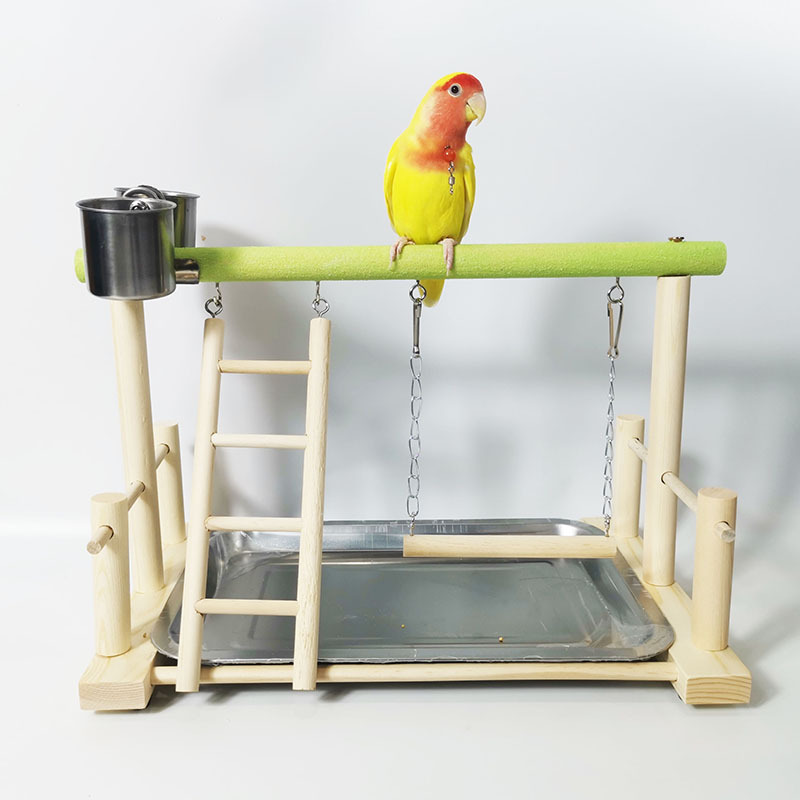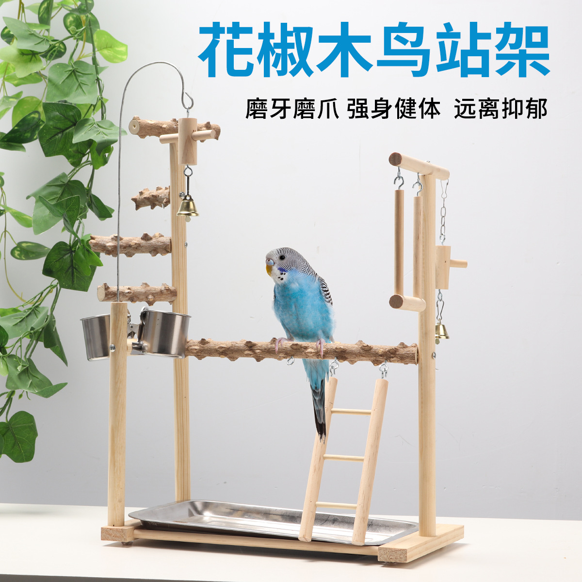 Persediaan burung berdiri kayu padat berdiri platform interaktif tempat bermain burung berdiri lantai kayu lada