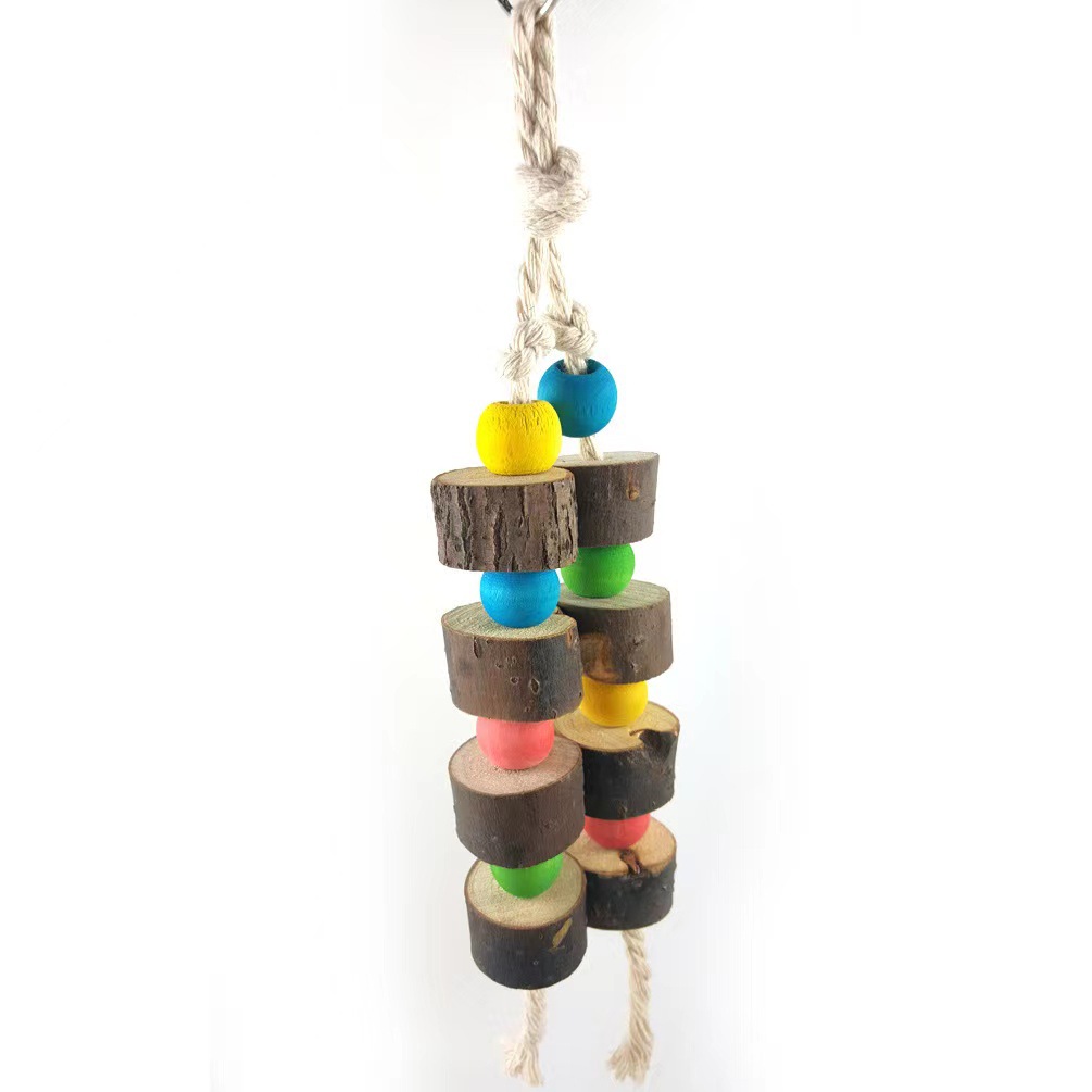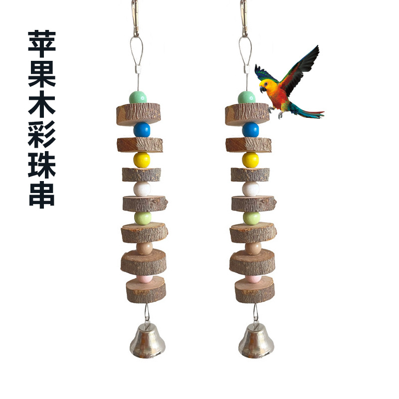 Ornamen dekorasi hewan peliharaan tali manik-manik berwarna kayu apel burung beo bermain gigit senar kayu ornamen dekorasi hewan peliharaan hamster