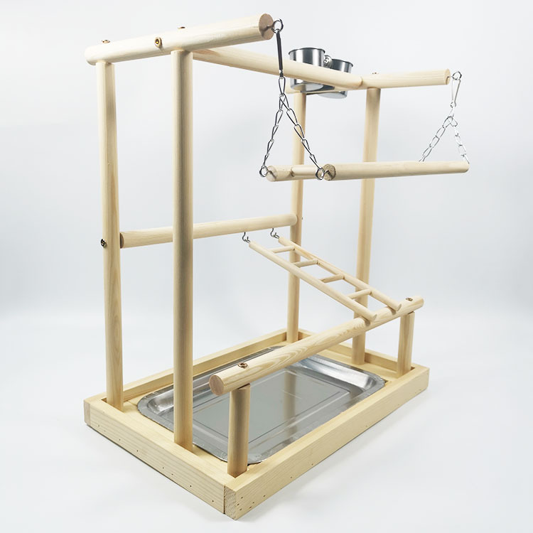 Berdiri burung nuri tangga ganda kayu padat rak latihan perlengkapan mainan burung bayan Interaktif tempat bermain rantai