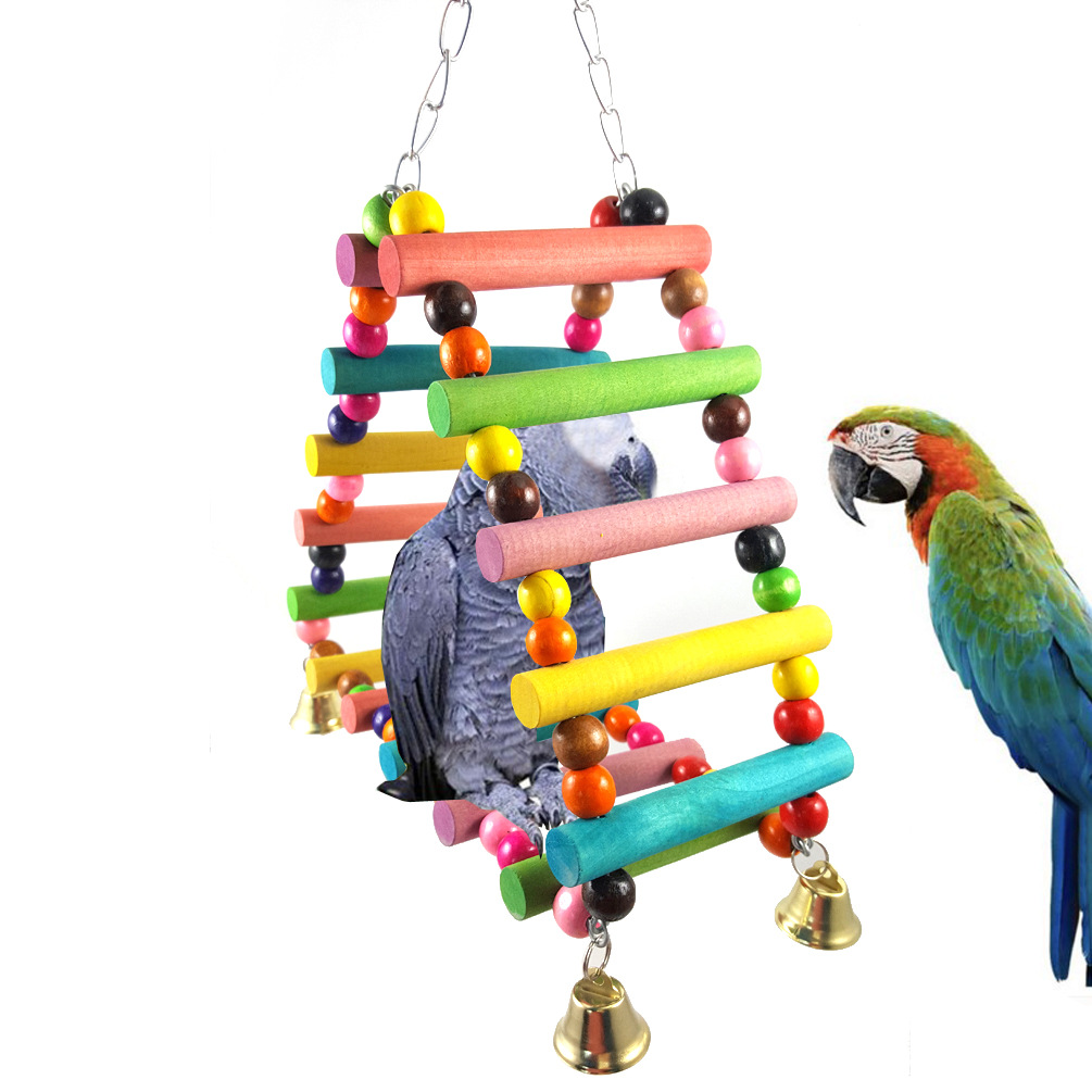 Mainan burung persediaan burung bayan tangga panjat Segitiga tangga ayunan manik-manik berwarna-warni ayunan segitiga 255g