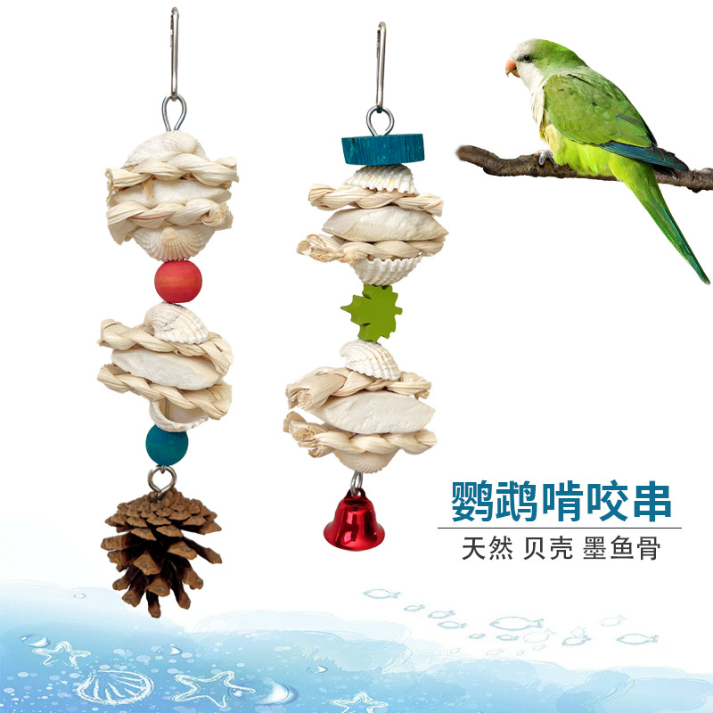 Mainan burung beo mainan burung peoni Xuanfeng, robek kerusakan persediaan burung bayan cangkang alami liontin dekorasi tulang cumi-cumi
