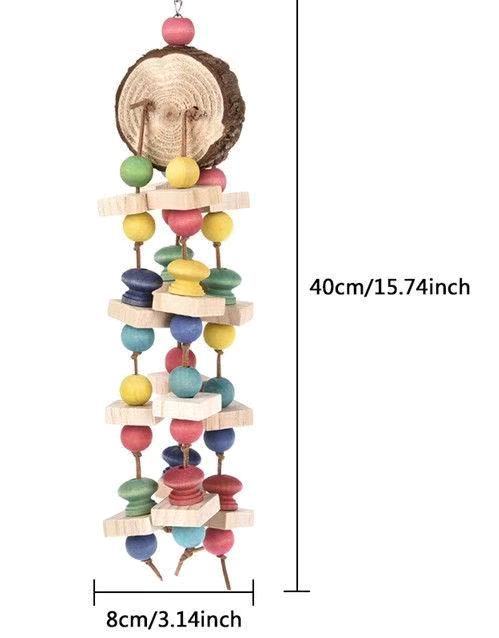 Mainan gigitan burung bayan mainan burung tali katun manik-manik berwarna blok kayu gigit senar besar rak memanjat bar