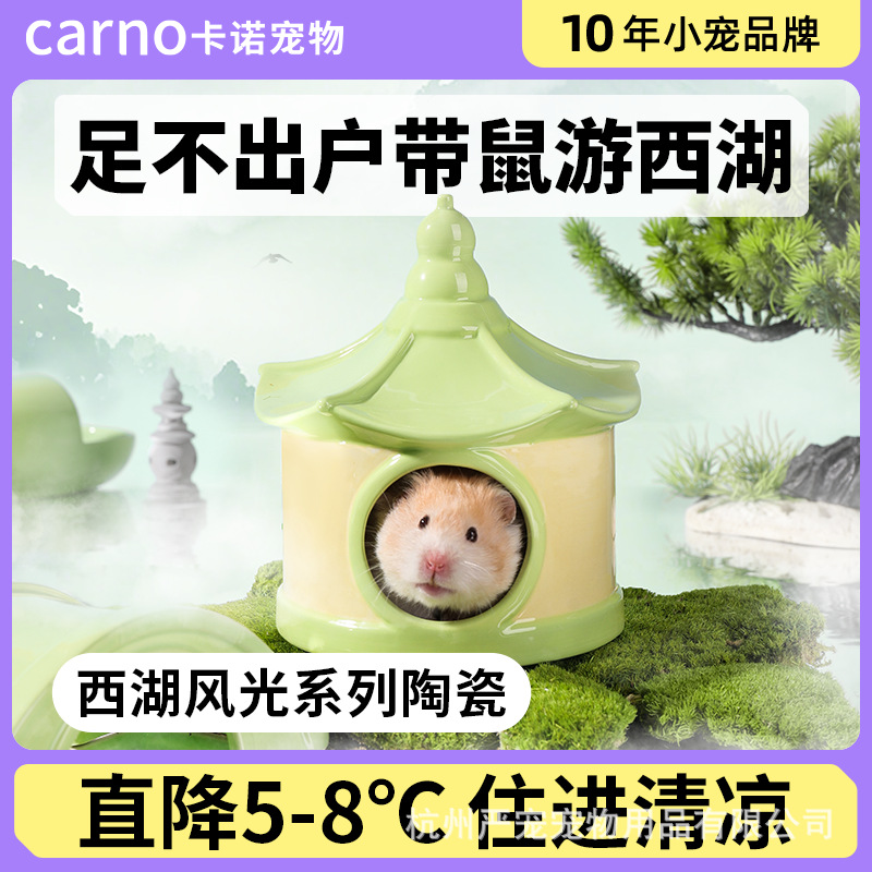 Perlengkapan Hewan Peliharaan Kano Rumah Penghindaran Rumah Keramik Sarang Es Botol Air Beruang Sutra Emas Alat Peminum Pendingin Sarang Dingin