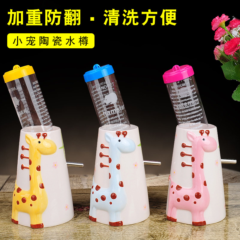 Perlengkapan harian hewan peliharaan kecil jerapah keramik pemegang botol air hamster landak vertikal pemegang botol air