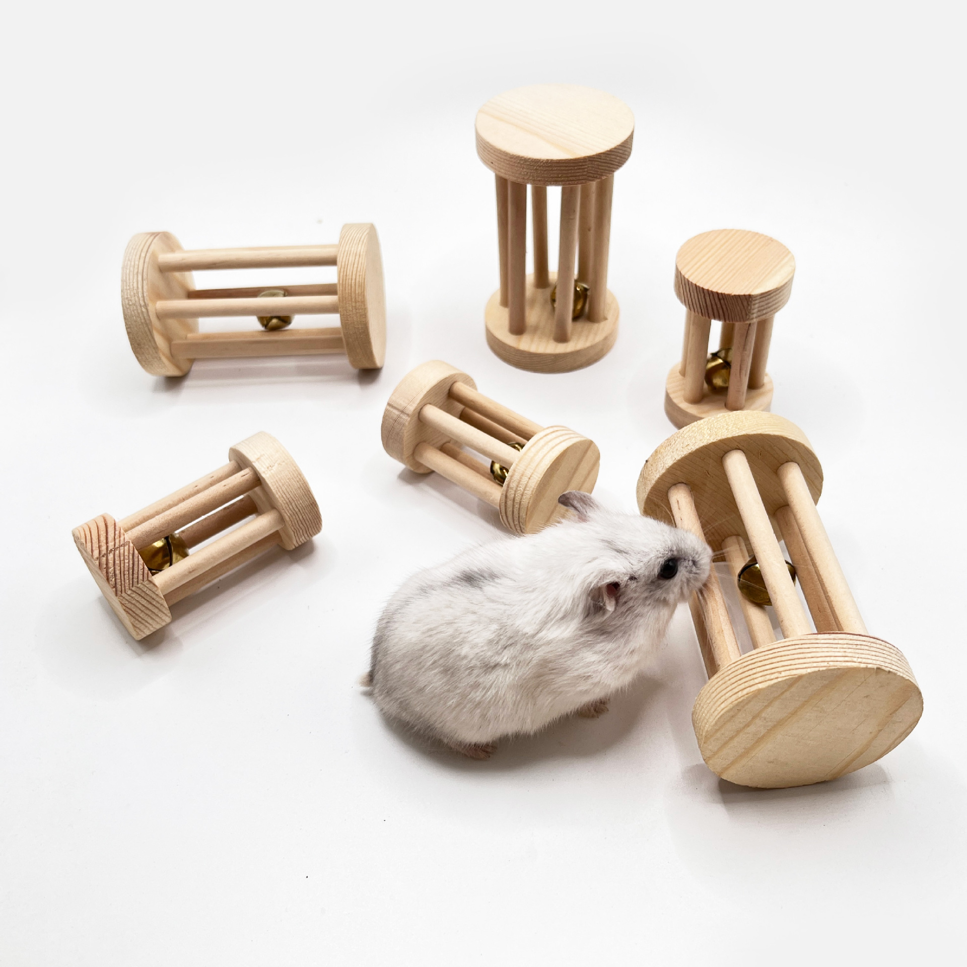Bel mainan kayu padat hewan peliharaan kecil mainan drum bunga Bell kolom Romawi mainan hamster molar pereda kaku mainan burung