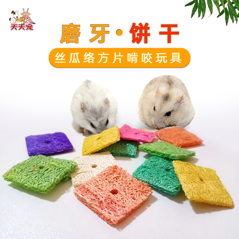 Luffa mainan hewan peliharaan, persediaan mainan hewan peliharaan hamster chinchillas rodent, pembersih gigi hewan peliharaan biskuit persegi