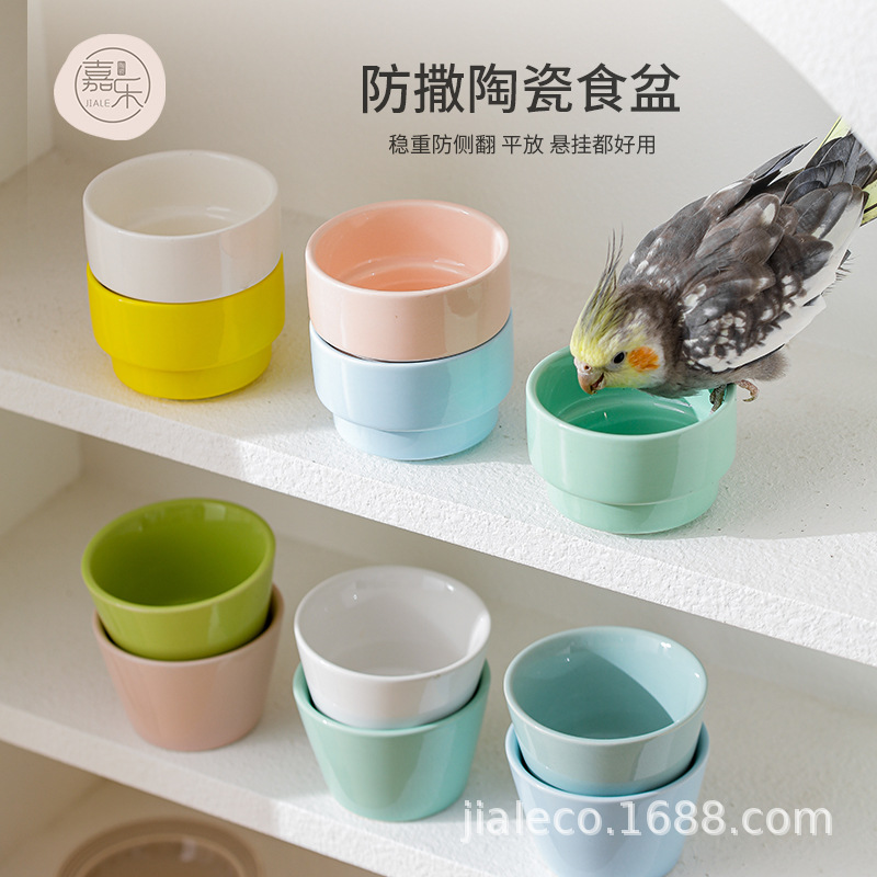 Kotak makanan burung beo Anti percikan anti percikan, mangkuk air pengumpan burung antigigit keramik dapat digantung