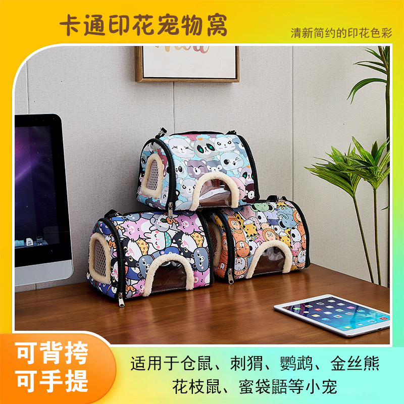 Tas burung beo kandang hamster tikus Belanda tikus landak tikus Belanda tas pembawa tas selempang portabel pemula antilembap