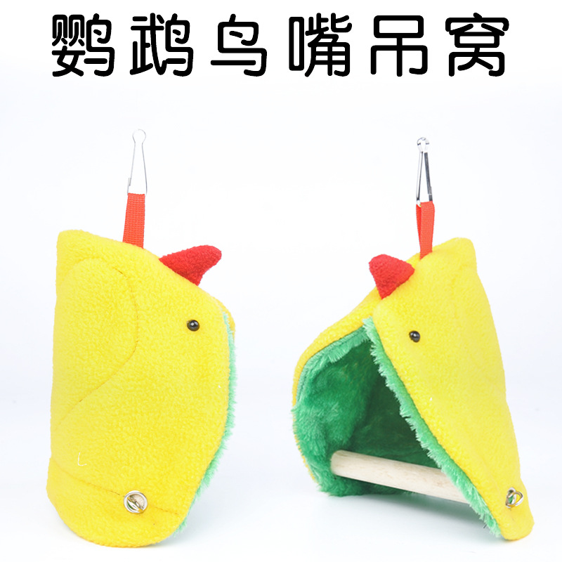 Sarang burung bayan gantung mewah, sarang katun hangat dengan tongkat berdiri Segitiga perlengkapan sarang burung peliharaan