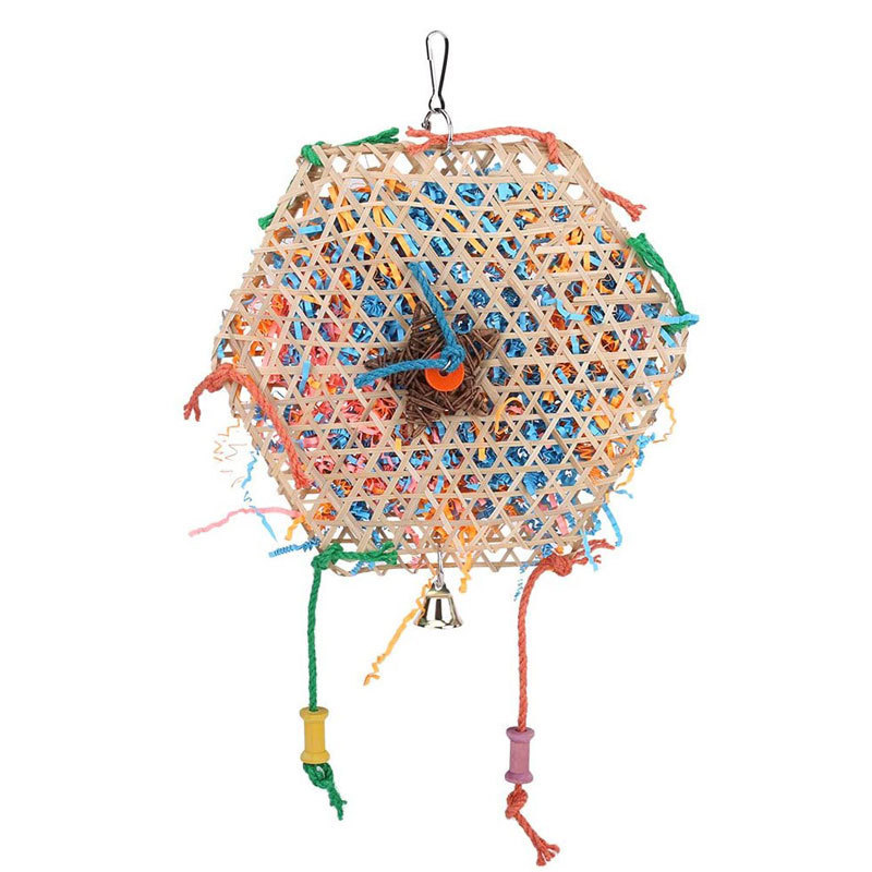Perlengkapan burung beo mainan burung tali jerami disikat Aksesori sangkar burung kertas gigit bambu woven mainan burung