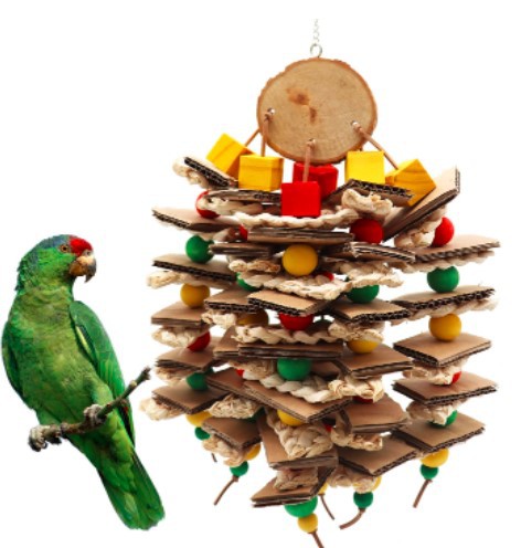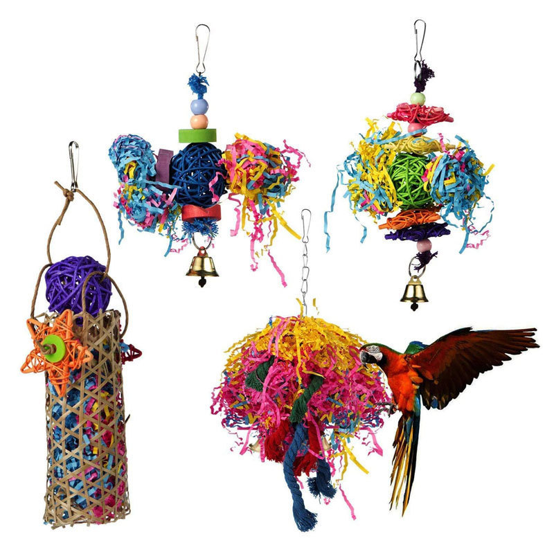 Mainan sangkar burung beo berwarna kertas aksesori perlengkapan burung peralatan macaw abu-abu mainan burung bayan