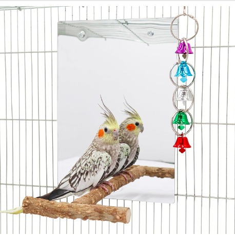 Persediaan burung bayan lada kayu berdiri cermin kulit harimau peony Xuanfeng tongkat gigit mainan burung gigit 5 tali bel