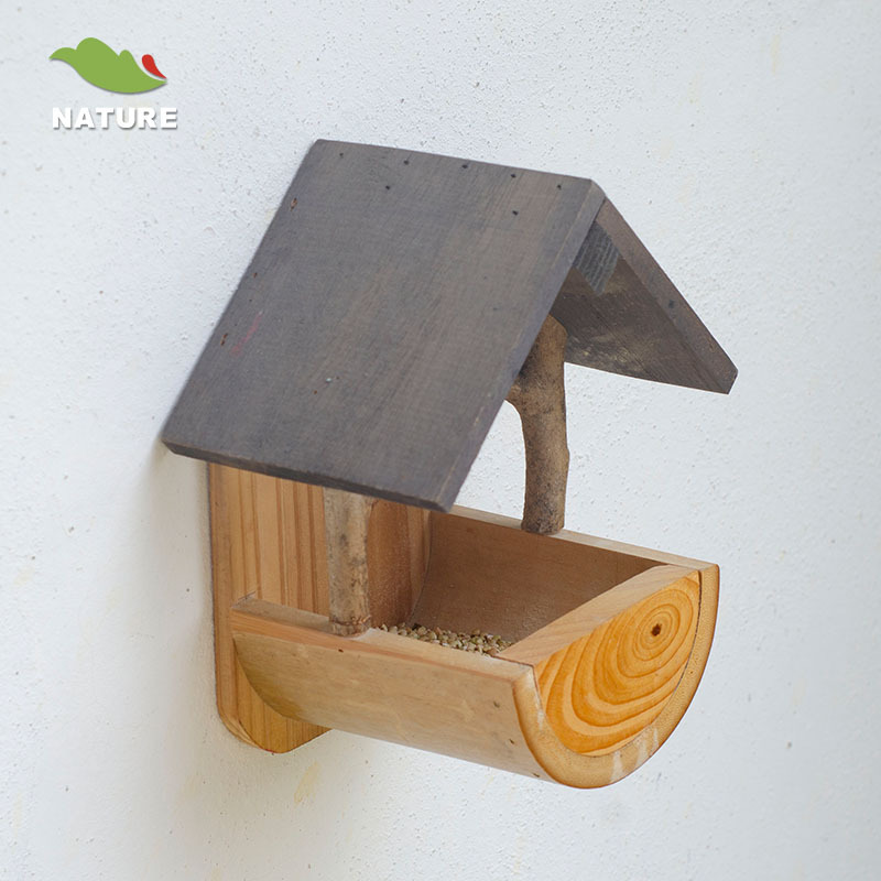 Grosir Pabrik pengumpan burung kayu kreatif luar ruangan dekorasi dinding tempat makan burung kayu murni kapasitas besar terpasang di dinding