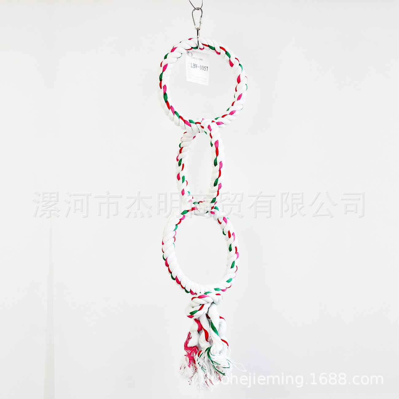 Mainan burung bayan hewan peliharaan, peralatan latihan memanjat tali katun tiga cincin mainan burung bayan