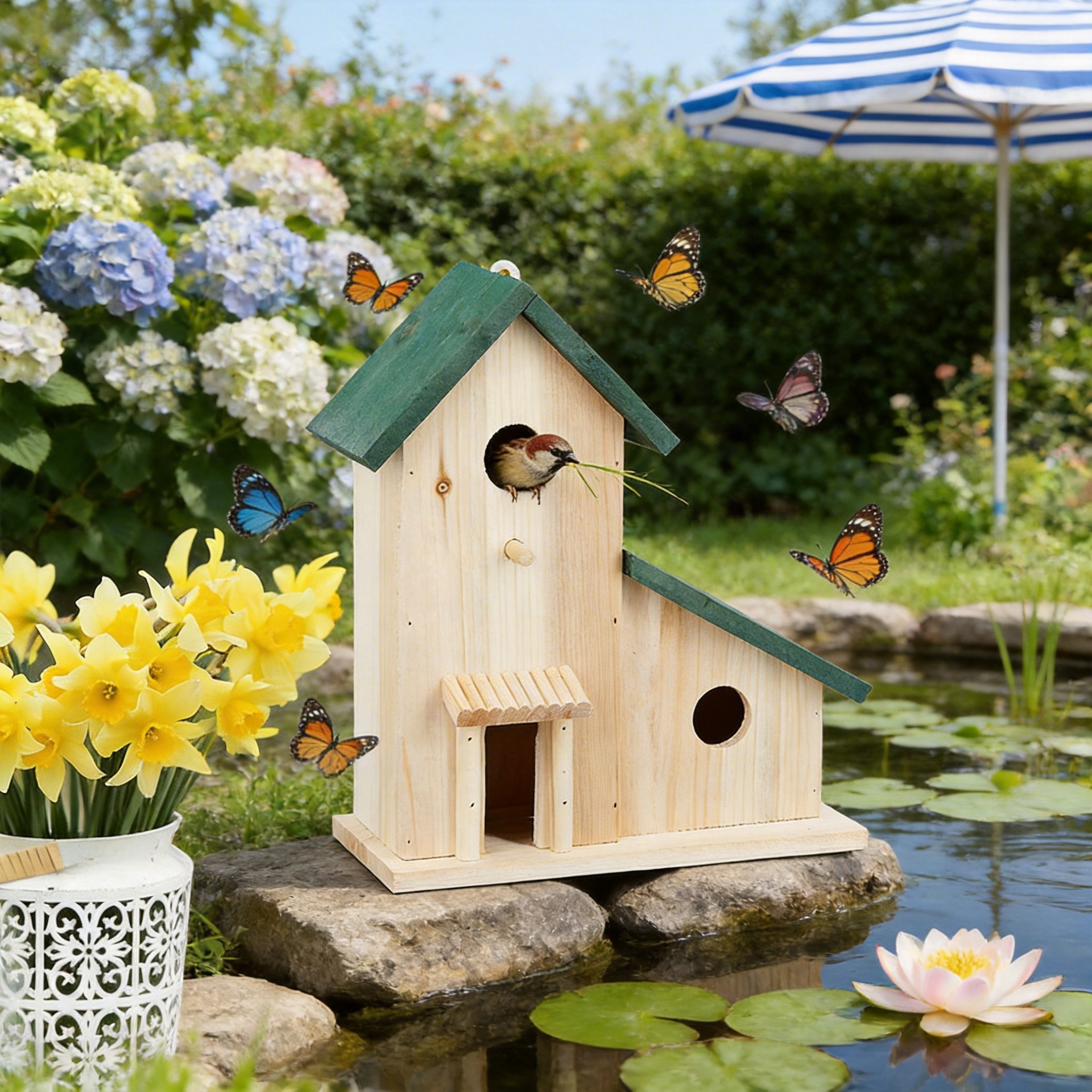 Kotak Pembibitan Burung Parrot Kreatif Kayu Lintas Batas Luar Ruangan Rumah Burung Kayu Rumah Kecil Ornamen Sarang Burung