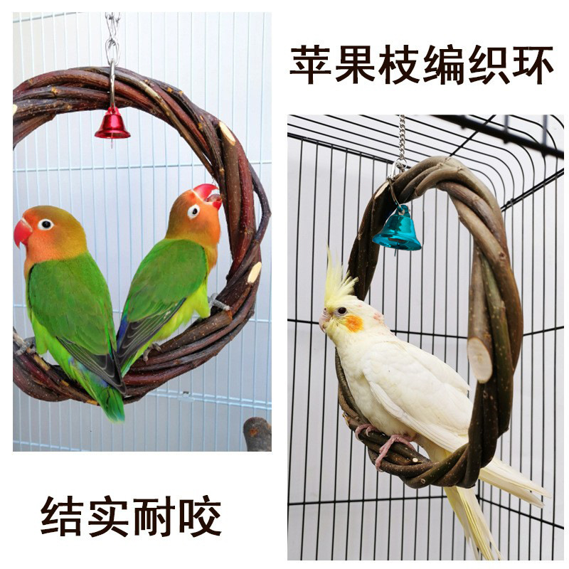 Parrot cincin gantung ayunan burung apple cabang anyaman cincin burung berdiri rotan cincin gigitan mainan sangkar burung