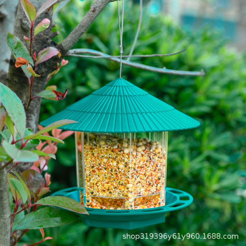 Pemberi makan burung plastik lintas batas luar ruangan dengan paviliun atap transparan tahan air menggantung tempat makan burung grosir