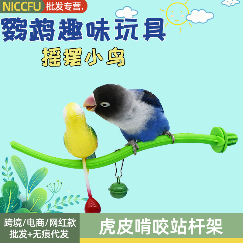 NC mainan burung beo mengurangi stuffy kulit harimau berdiri batang rak menggigit simulasi permainan kandang burung palsu platform kecil kandang burung berdiri batang bermain
