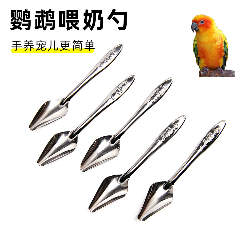 Sendok pemberi makan burung bayan baja tahan karat saudara Xuanfeng kulit harimau terangkat tangan sendok makan air pemberi makan burung bayi