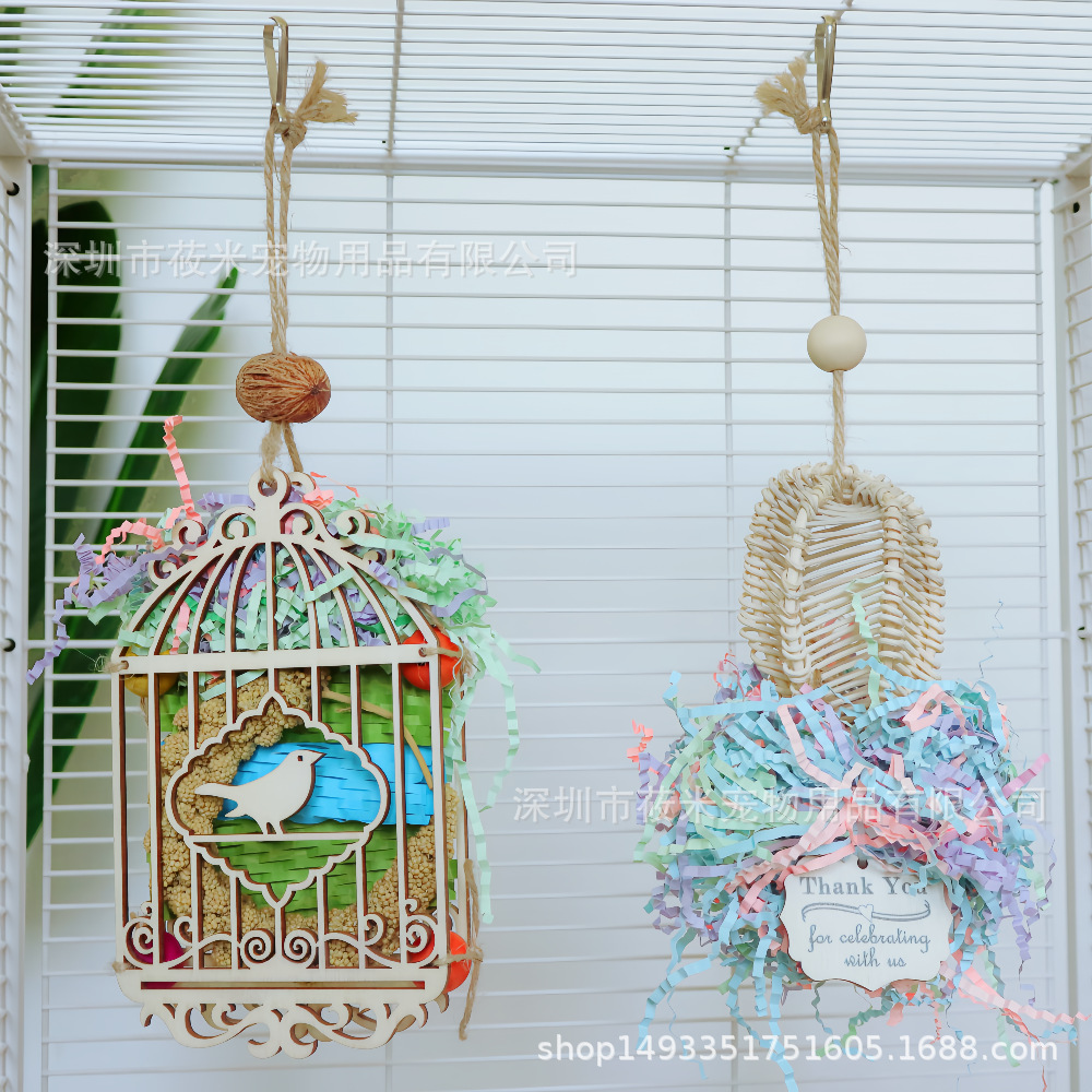 Mainan burung beo besar, sedang dan kecil aksesori sangkar burung lonceng angin Xiangling lintas batas mainan burung panas