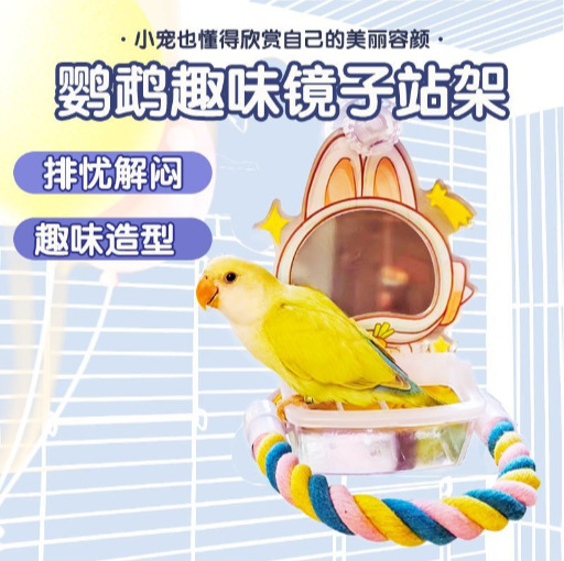 Mainan cermin burung beo peony rak geraham berdiri tiang berdiri rak menggigit mainan burung aksesoris sangkar burung pengganti rambut