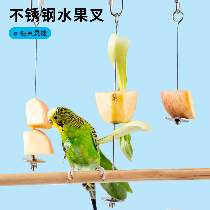 Garpu Buah Stainless Steel untuk Burung Garpu Buah Tongkat Buah Burung Beo Pengumpan Buah Klip Khusus Buah Burung Beo Garpu Buah