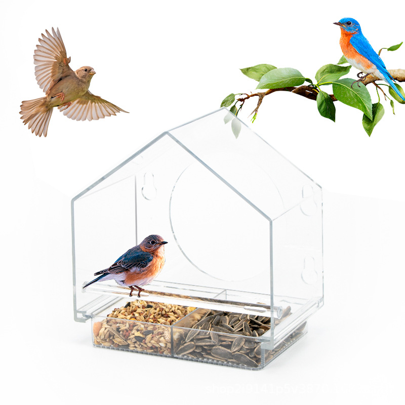 Kotak transparan pengumpan burung peliharaan gantung luar ruangan sangkar burung pengumpan burung kolibri grosir lintas batas