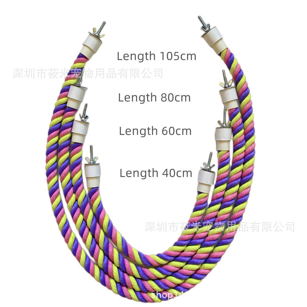 Pabrik langsung burung beo warna macaron tali panjat burung berdiri tongkat tali katun berputar tangga berbentuk U burung berdiri