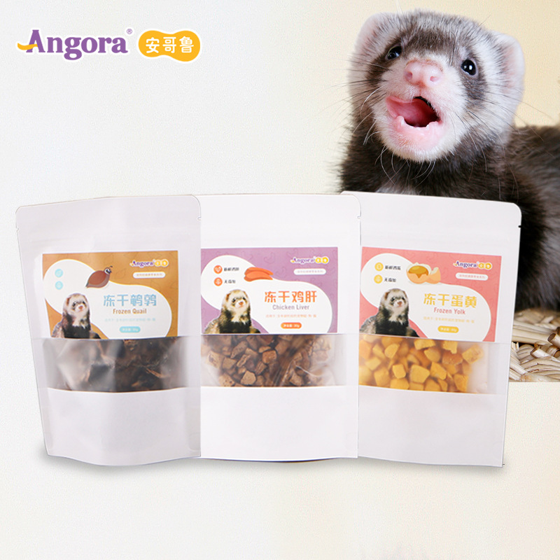 Anglu cerpelai hewan peliharaan ferret, makanan ringan latihan bulu unggas kering hati ayam kuning telur puyuh 30g