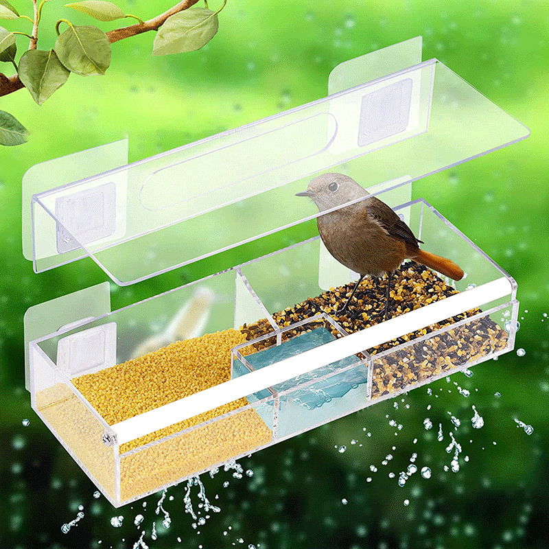 Tempat makan burung akrilik, rak pemberi makan burung kolibri jendela persegi panjang, rak pemberi makan hewan peliharaan