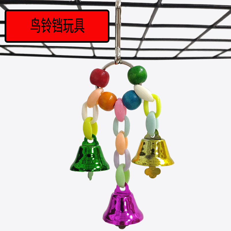 Mainan burung beo mainan burung manik-manik warna-warni lonceng burung beo menggenggam cakar di kaki bawah mainan hewan peliharaan Amazon