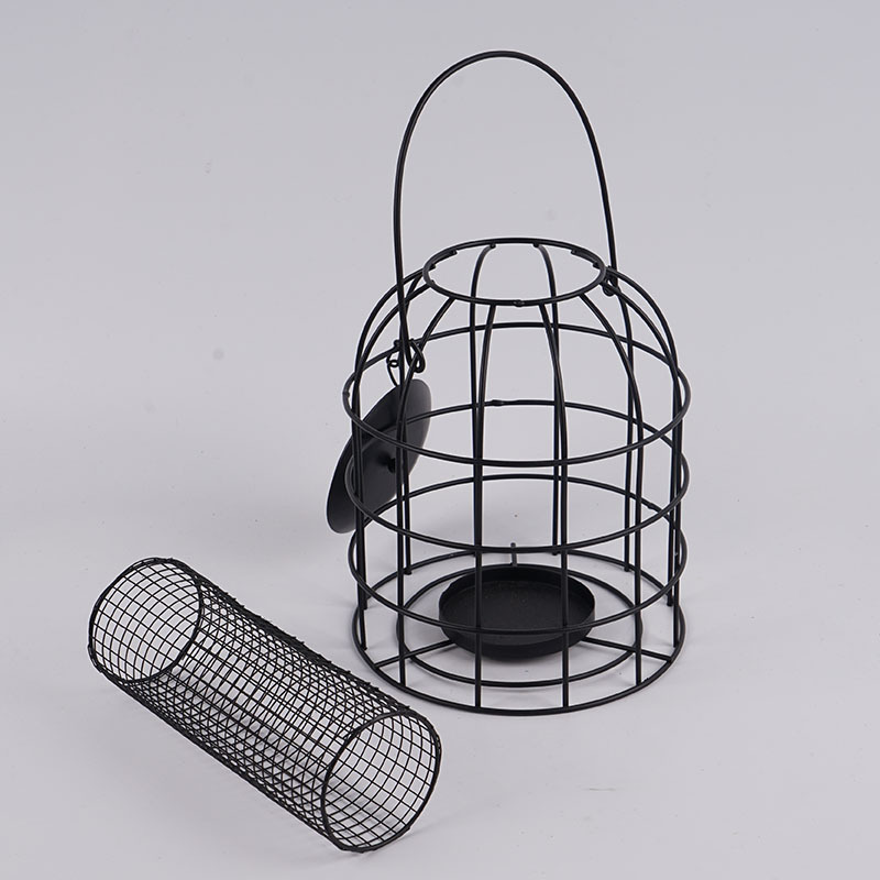 Penjualan langsung pabrik pengumpan burung sangkar besi besar hitam dengan tabung kisi pengumpan burung peliharaan