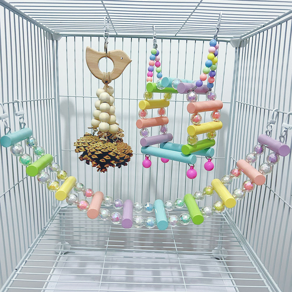 Mainan edukasi burung bayan populer Amazon Cross-border mainan burung bayan cincin plastik kayu