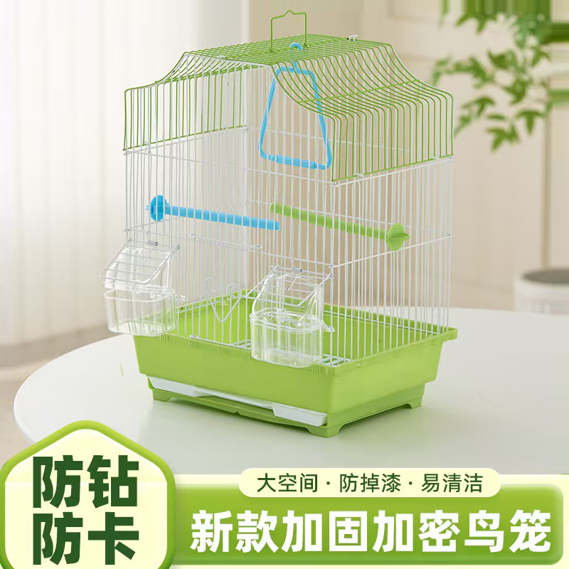 Produsen kandang burung beo AliExpress grosir kandang burung logam yang diperkuat dan diperkuat untuk mynas dan burung thrush, kandang burung berbentuk rumah yang portabel.