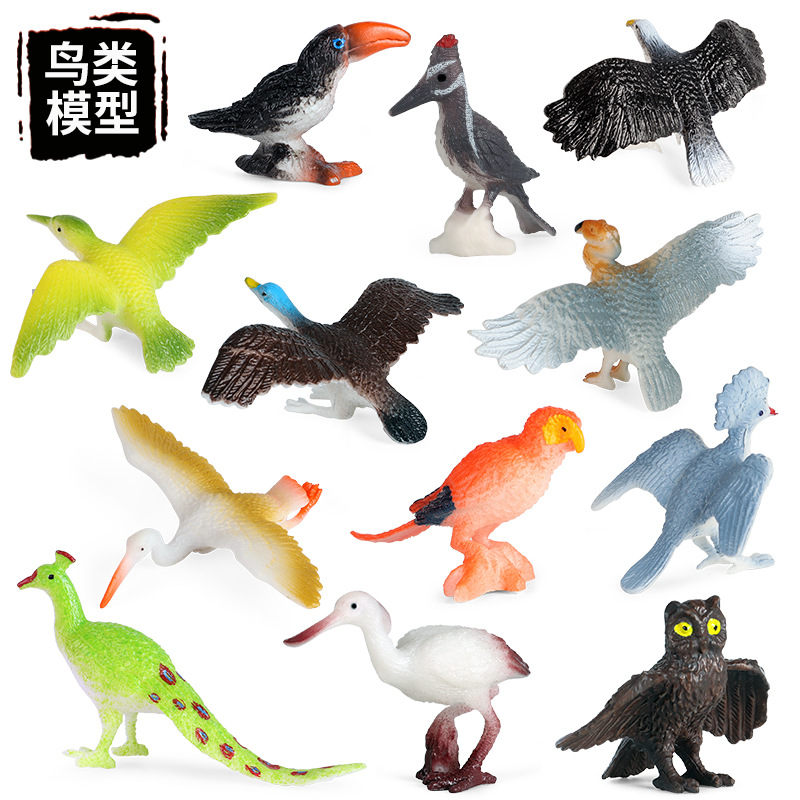 Ornamen Burung Kognitif Mainan Model Hewan Anak-anak Burung Burung Elang Burung Kakatua Burung Merak Flamingo Merpati Kingfisher