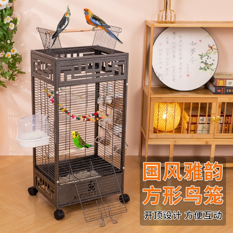 Kandang Burung Parrot Kulit Harimau Xuanfeng Villa Peony Wenbird Ukuran Besar Lipat Logam Rumah Kandang Melihat Ruang Besar