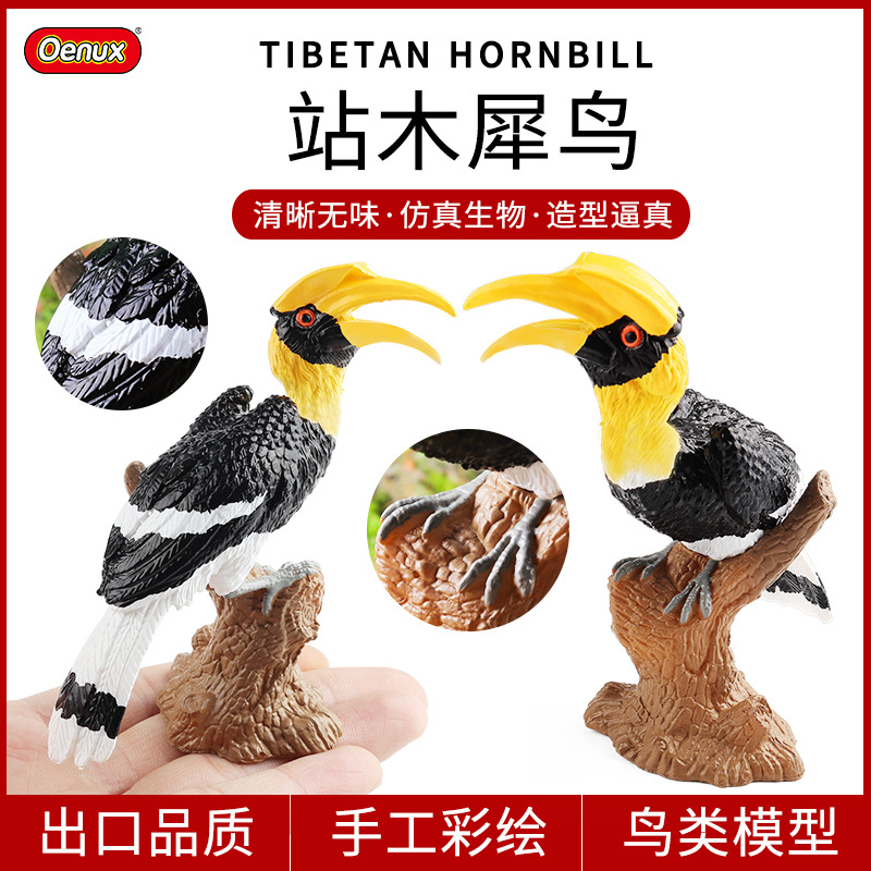 Anak-anak simulasi kognitif burung model hewan dekorasi rumah berdiri solid hornbill toucan burung beo mainan